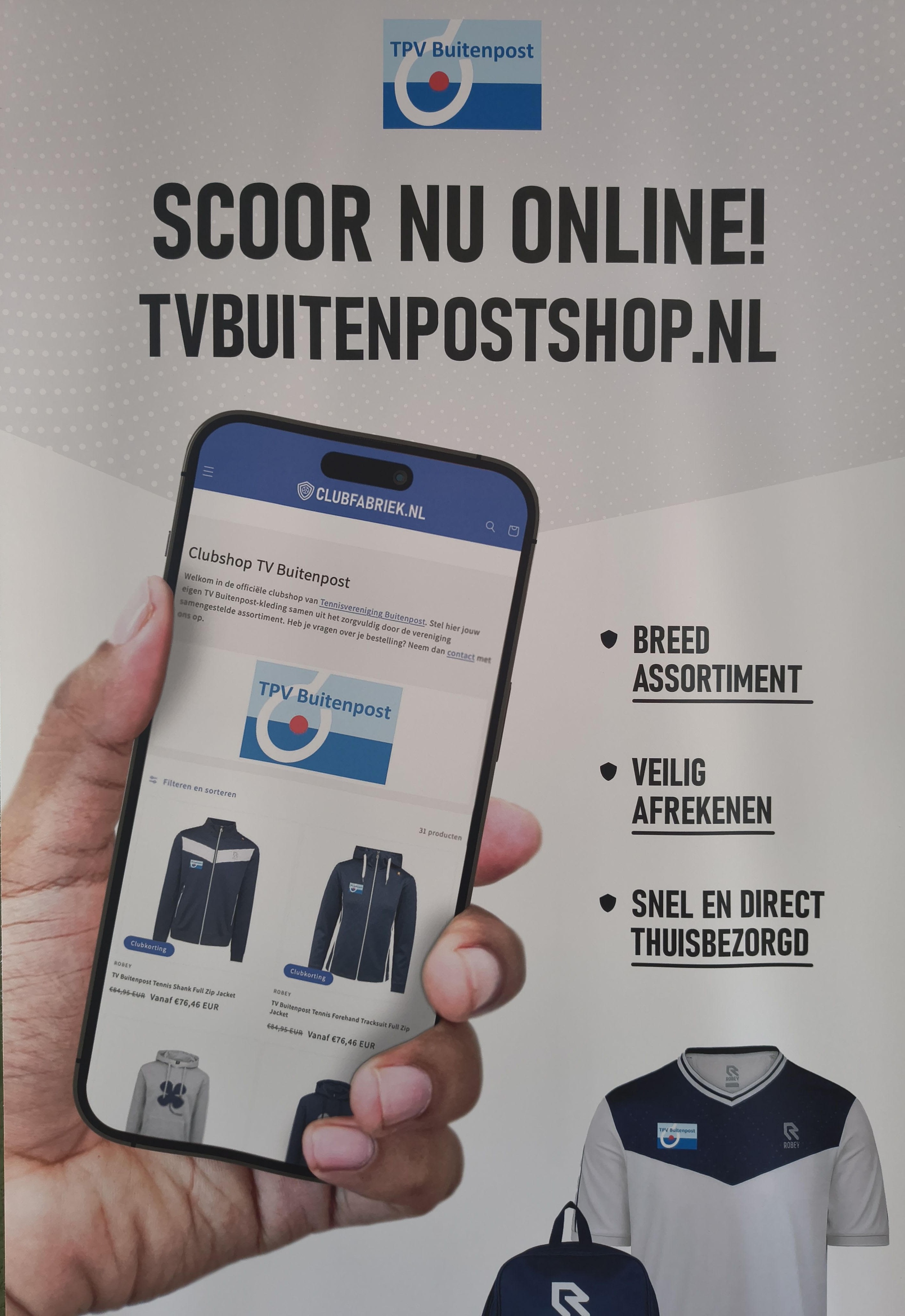 Sinds enkele jaren bieden we in samenwerking met Clubfabriek een uitgebreid assortiment clubkleding aan voor zowel tennis als padel.