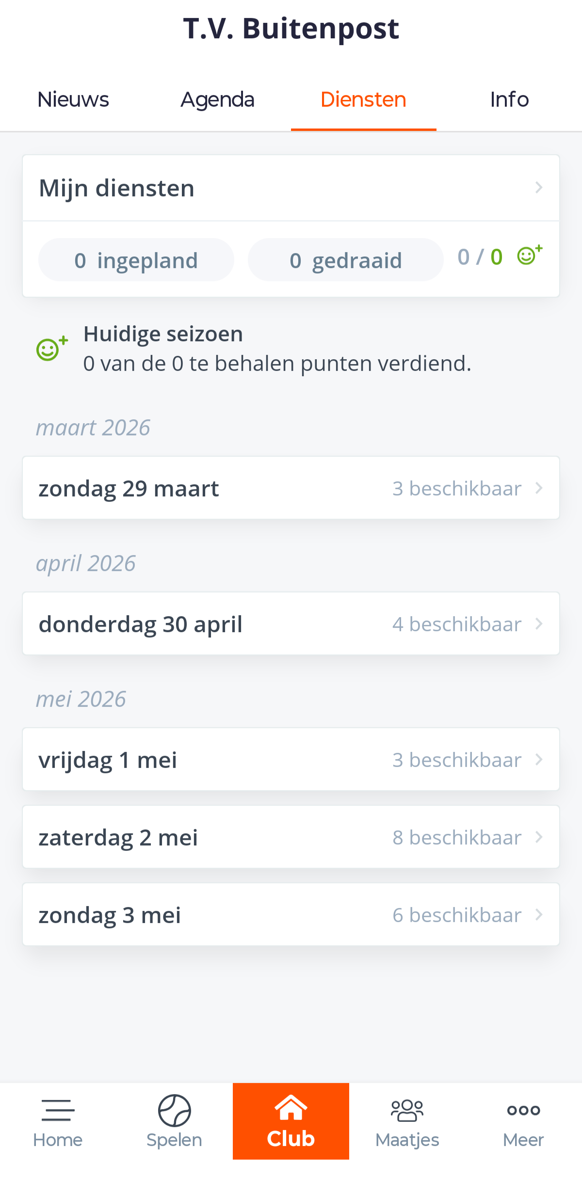 Schrijf je dan in via onze KNLTB Club App, klik op tabblad "Club" en daarna op het kopje "Diensten" en kies een geschikt blok.